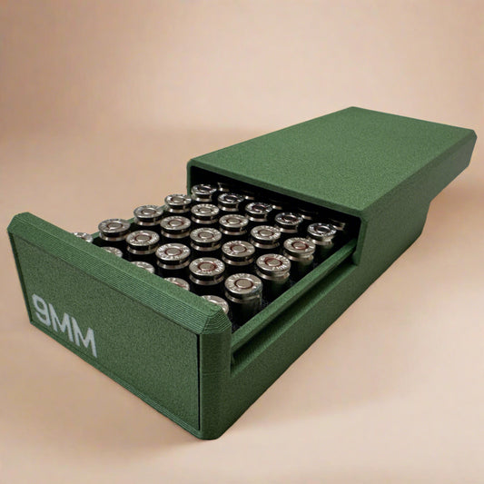 9mm Luger Ammunition Storage Container - Crate Box Style - 25 rounds
