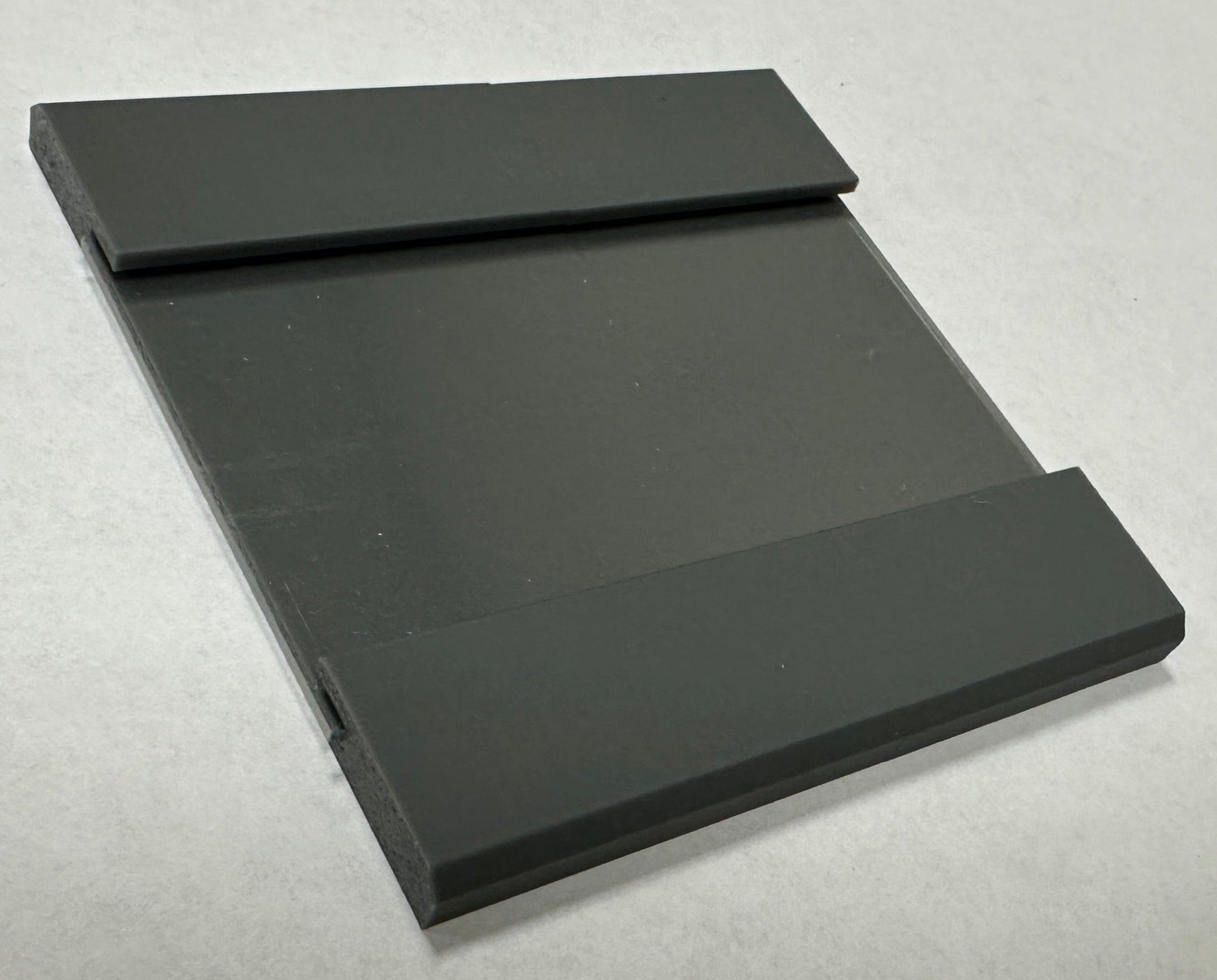 A four inch square, custom made, name plate with clear acrylic window, complete with double stick mounting tape on the back.